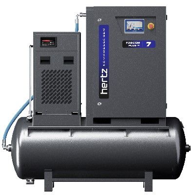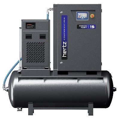10 bar bei 1,0 m³/min. Liefermenge auf 200l Tank mit Trockner